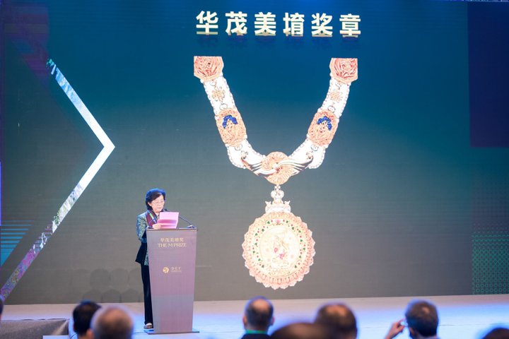 根据华茂美堉奖章程,获奖者会获得一枚金质奖章、一张证书,并附有奖状和50万元人民币奖金。现场,中国工艺美术大师、“程氏花丝”创始人程淑美也对奖章进行了介绍发布。