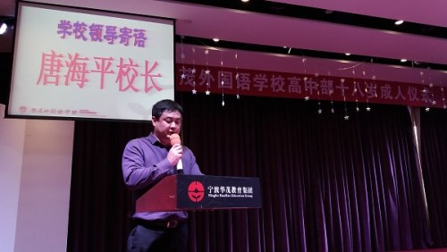 成人仪式在嘹亮的国歌声中正式开始,诗朗诵《青春万岁》作为开场序曲揭示了青春的含义:青春是热情后的冷静,青春是成功后的淡然……仪式上设置了发言环节,卢女士作为家长代表送给学生们三句诤言:把自己当成别人、把别人当成自己、把别人当成别人。同时她祝福高三学子们能够携带着成人的稳重与责任,夯实基础、脚踏实地、自信的走向考场,交出一份满意的答卷。裘同学作为学生代表发言,饱含深情得表达了在十八岁成人之际对父母的养育之恩、老师的教育之情以及同学的朋友之谊的难舍难分。随后,宁波华外校长唐海平为本次活动致辞,感谢家长对学校工作的支持,感激老师们为高考废寝忘食的工作,并祝贺同学们长大成人,祝福全体能够在16年的高考中勇创佳绩。仪式尾声,全体高三同学庄严宣誓:“以我火红青春,建设锦绣中华!以我壮志激情,创造崭新未来!”此外,家长和同学们在仪式上面对面交换了精心准备的信件,成人证书。