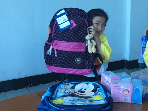 自强公司“彩虹在行动”的志愿者们,为小候鸟们送上提前准备好的彩虹书包、读本、文具、笔记本等学习用品。谈到开展此次活动的初衷,彩虹志愿者雷姐姐说:“那些孩子生在贫穷的小山村里,想天天上学,对于他们来说是一种奢望,即使上了学,也要用稚嫩的肩膀承担起比城里孩子更多的家庭重担。送些与学习有关的东西,就是希望他们能通过学习改变自己的人生轨迹,希望他们有彩虹的陪伴更坚定、更勇敢。”