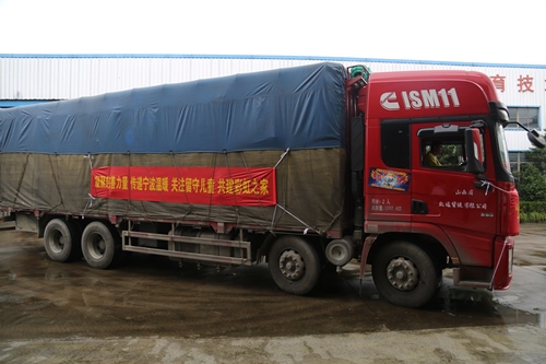 开往贵州黔东南从江县加榜乡的物资车从华茂文教公司出发