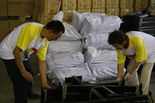 早上8点,彩虹计划的工作人员便已经忙碌起来,整理打包各类物资。“这是捐赠给贵州加榜首个华茂·彩虹之家的部分物质。”华茂·彩虹计划总策划何玉花向记者介绍,这批物资包含了当地孩子们急需的组合图书柜、阅览桌、餐桌、课桌椅、学生衣柜等设备设施,同时还有学生电话、洗衣机等各类生活物资,还有一批儿童读物和芦笙、笛子等当地少数民族乐器。考虑到贵州加榜当地情况,也为了将爱心送达最后一公里,华茂·彩虹计划还派出了专业的设备安装人员,跟随物质一起,前往贵州当地,将衣柜、图书柜、餐桌、课桌椅等设备安装到位。现场工作人员指着堆积如山的物质向记者介绍到。在前期踩点的基础上,彩虹计划组委会根据当地孩子们的实际情况,有针对性的准备爱心物资,做到急孩子们之所急,不使爱心浪费。
