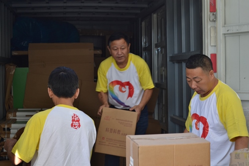 “华茂·彩虹计划”工作人员进行物资搬运