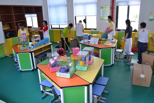 早在今年的5月,“华茂·彩虹计划”就通过与象山慈善总会义工队对接,实地走访并确定在象山大塘小学、贤庠小学及新桥小学3所困境、留守儿童集中的地区建立“华茂·彩虹之家”。随后,3所“华茂·彩虹之家”的物资生产紧锣密鼓地进行,华茂教育基金为“彩虹之家”提供课桌椅、科教仪器、书柜等等所有硬件配置,并委托华茂文教公司进行生产、安装,确保产品的安全及质量。