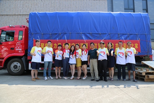 8月21日上午,海棠书屋 厂区开始了新一周的生产工作,但与公司日常的工作情景不同的是,仓库前统一穿着“彩虹服”的“华茂·彩虹计划”志愿者们正协力将印有彩虹logo的公益物资搬运上车,据悉,这批彩虹物资将用于 “华茂·彩虹计划”在贵州的第二所“彩虹之家”——加榜乡小平小学的建设。