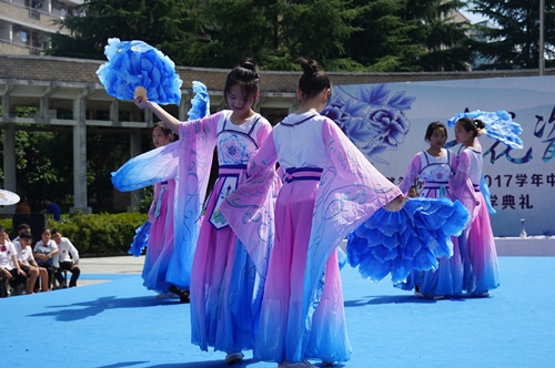 烟雨氤氲,纤纤仕女。新出芭蕉,绿锈铜环。三部同学带来的歌舞和朗诵让我们仿佛看到了一幅令人流连的泼墨山水,一派让人沉醉的天青之色!是的,学生的成长何尝不是一个等待的过程,纵使隔江千万里,我都会在茫茫烟雨中等你!