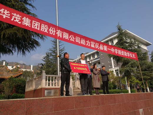 本次捐赠的化学实验室、创新地理室、创新通用技术实验室由宁波华茂文教股份有限公司承担设计、建设任务,由华茂文教的全资子公司云南捷程教育科技有限公司出资40万元捐赠,并现场捐赠现金10万元。