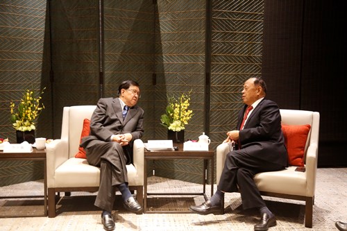 龙永图先生与徐万茂董事长亲密交谈