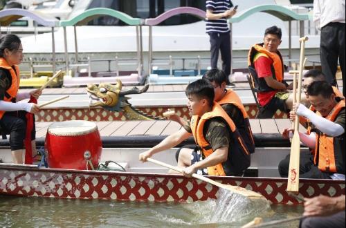 比起平常工作,划龙舟对于大部分的队员们来说都是第一次,好在队友们齐心协力,在慢慢适应了如何划船后更是稳中有快。