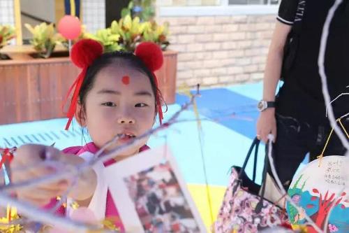 一颗红朱砂,开启智慧之旅。身穿汉服的书法大师们用朱砂为孩子额头正中心点上了一个红点,红红的朱砂痣是对孩子们最衷心的祝福,寓意着孩子从此耳明心亮,开启智慧征程,在学海中好读书,读好书。随后,孩子们走到涂鸦墙前,将五彩的手印留在上面,又踮起脚尖将心愿卡挂在心愿树上,他们将在这里留下纯真的童年和回忆,带走丰盈的理想和收获。