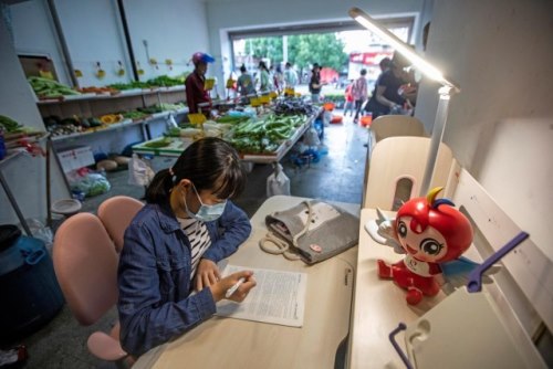 随着日暮逐渐降临,在人声鼎沸的宁波联丰菜场,初一女孩小梦(化名)正潜心学习。 据小梦妈妈介绍,15年来,夫妻俩每天从凌晨2点一直忙到深夜10点,小梦从小便在菜场长大,有时写完作业还会帮忙“吆喝”卖菜。虽然喧嚣嘈杂的市场不是课堂,放满瓜果蔬菜的货架也不是书桌,但小梦一路长成“学霸”,多次取得全校第一的成绩。