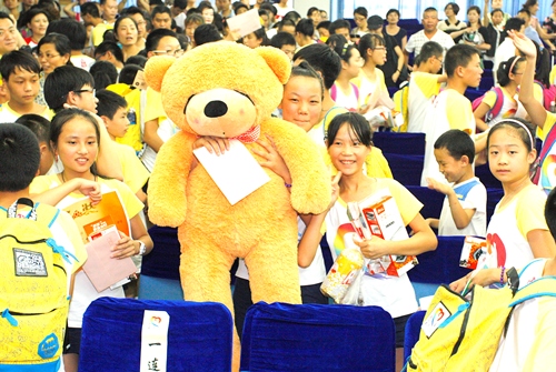 7月14日,为期8天的“华茂彩虹行动”暨“小候鸟”欢乐夏令营圆满结束,来自全国20多个省市的84名中小学生与父母一起度过欢乐时光。图为“小候鸟”得到了自己想要的礼物。