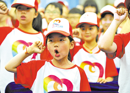 “亲切懂感恩,相处如手足,同城同行,互学共享……”昨天上午,来自江苏省睢宁县的鄞州区赤堇小学学生姚咏梅正在参加“华茂·彩虹行动”公益夏令营开营宣誓仪式。由宁波华茂教育基金会出资100万元举办的这次活动,邀请来自全国各地84位留守儿童和宁波“小主人”结对,在未来7天中参加篝火晚会、营员集体生日、创意饼干DIY、趣味运动会、汉字PK大赛等一系列活动。